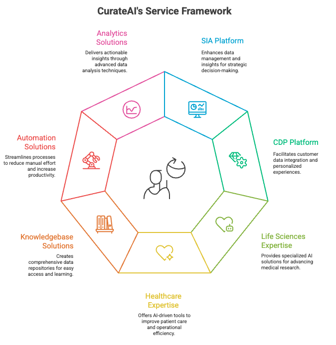 CurateAI elevates the power of SIA and CDP with expert AI services tailored for life sciences and healthcare. We transform data workflows, accelerate research, and optimize operations through customized knowledgebases, automation, and advanced analytics.